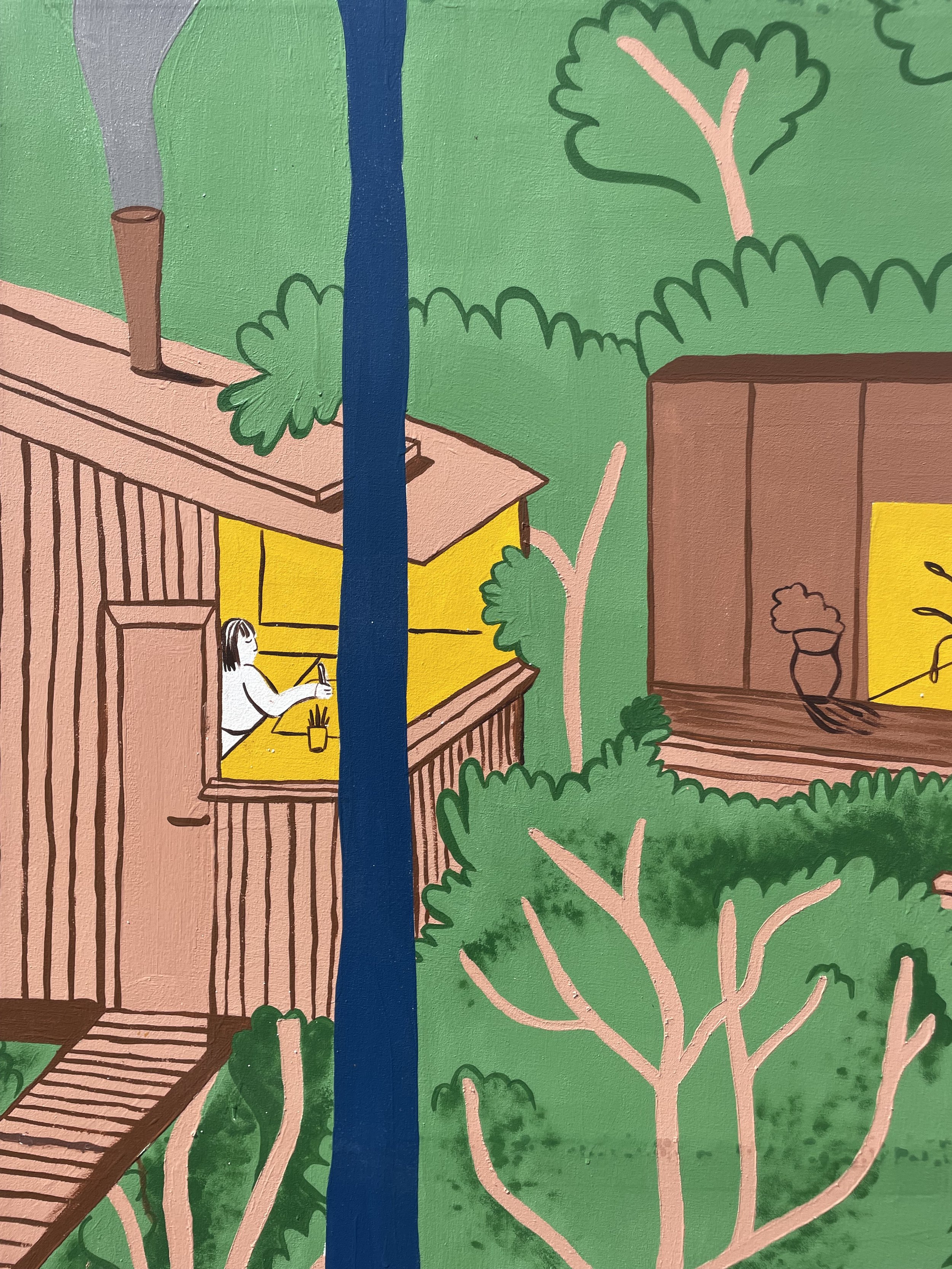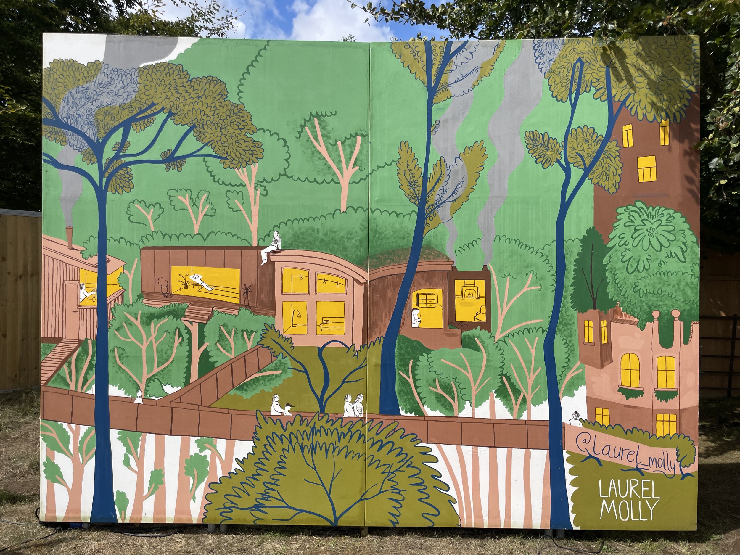 I was invited to End of the Road in Dorset UK to paint my award winning illustration ‘When We Reside to the Treetops’ as a mural.