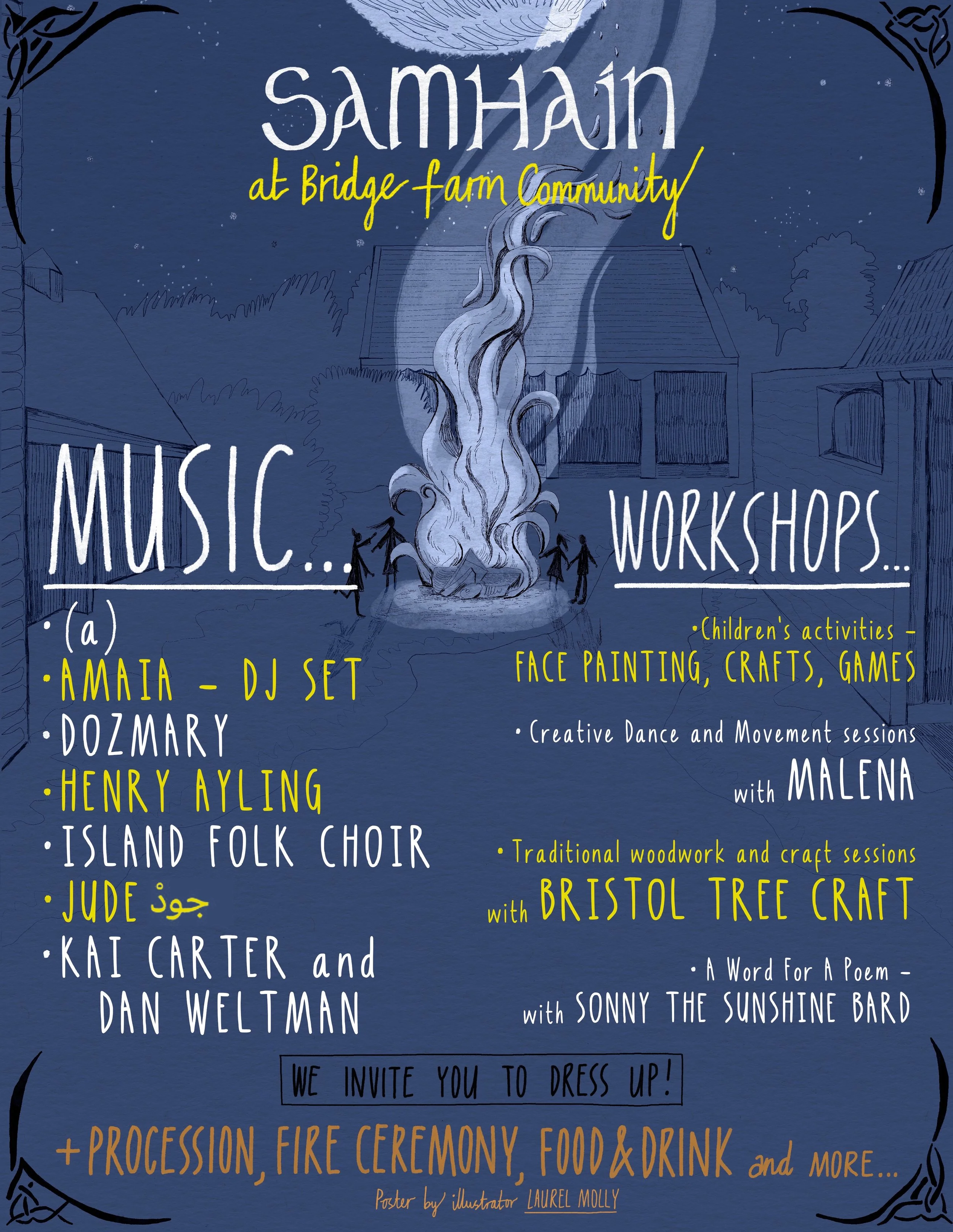 I have been working with Bridge Farm Community to design posters for their seasonal events and music, including my own workshops.